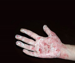 Lëngu i domates është një ilaç mjaft efikas në rastin e djegieve të lëkurës të shkallës së parë. Menjëherë sapo lëkura ka pësuar djegie të shkallës së parë, lyerja e lëkurës së djegur me lëng domate ndihmon në ndalimin e nekrozës së mëtejshme të lëkurës dhe rehabilitimin e saj.